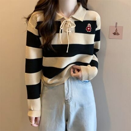 Women’s Casual Fashion 2-piece Set Long Sleeve Loose Striped Top