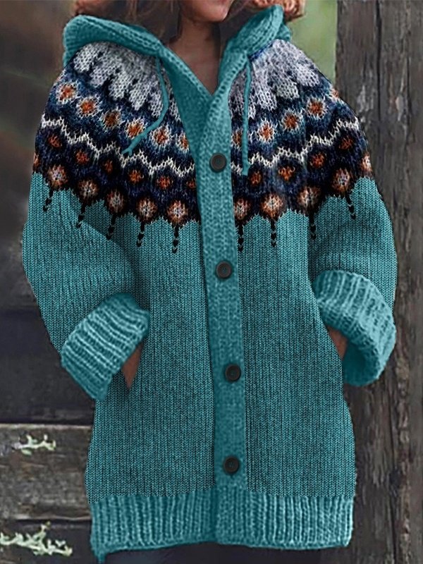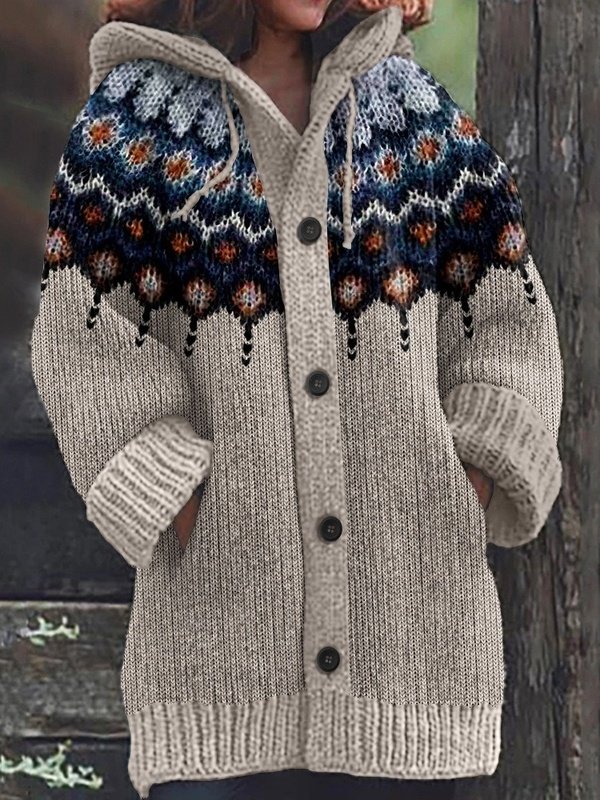 Retro Ethnic Print Women’s Casual Cloak Coat