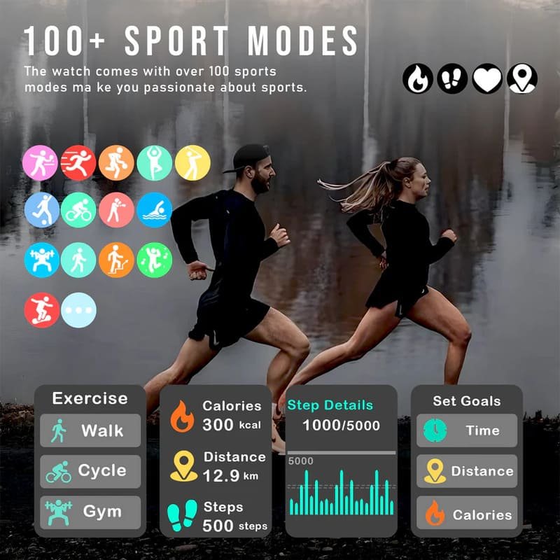 - ⌚All-Day Fitness Tracking: Track your steps, calories, and performance in over 100 sports modes like running, yoga, and swimming with our step counter . This digital watch tracker is perfect for anyone looking to stay active.