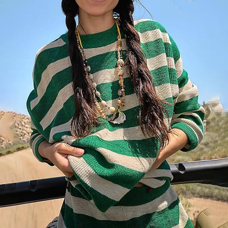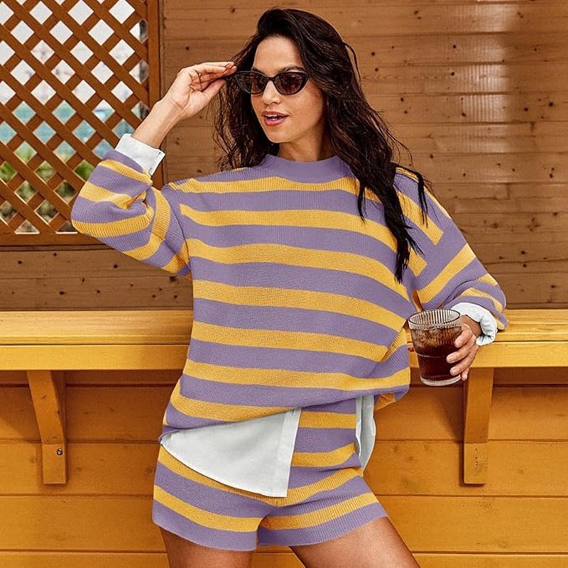 Be the first to review “Women’s Casual Fashion 2-piece Set Long Sleeve Loose Striped Top”